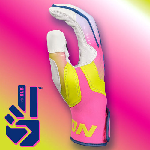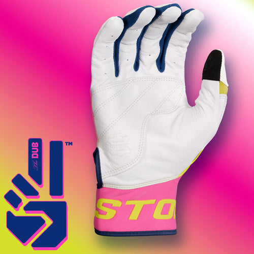 Sweeten your swing with the Easton Walk-Off Ethos THE DUB Batting Gloves! The one-piece palm is crafted with tackified full grain leather, creating a thicker and more durable hitting experience. Additionally, there is a reinforced double-layer leather palm for even more durability. For added stability, these batting gloves are designed with an ergonomic one-piece neoprene cuff, thumb, and wraparound strap featuring the Easton logo.