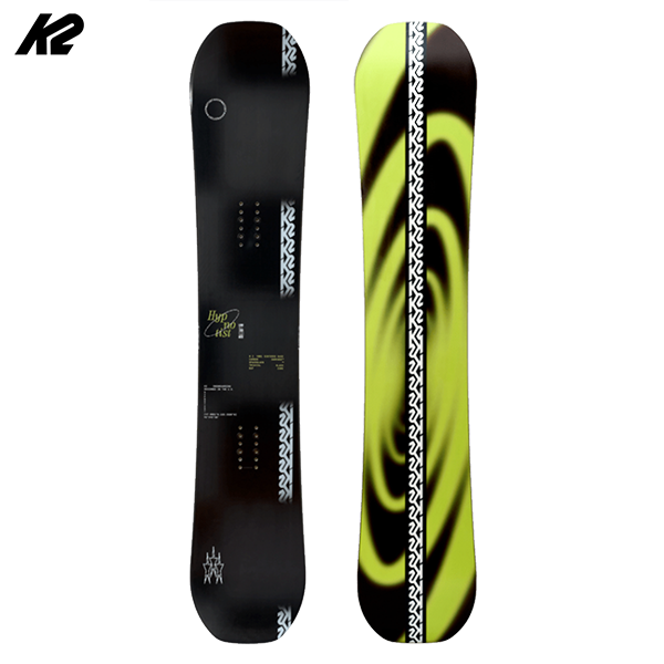 The internal team at K2 Snowboarding has been dreaming of the hypnotist for a few years, and there is no better time than the present to release our baby. This all-new premium freestyle snowboard is built for the more advanced to expert snowboarder, transitions, on hips, and on medium to large terrain park features.We leaned on our trusty tri-blend BAP core as the foundation for the Hypnotist. We’ve added our Carbon DarkWeb™ to speed up transitions from edge to edge, and our new tip-to-tail Carbon Backbone™ to increase snap.To help you spin that extra 180 degrees, reduce swingweight, and decrease chatter in the tip and tail, we’ve replaced the tip and tail of the core with our SpaceGlass™ construction, lighter and harder than wood, SpaceGlass™ puts the Hypnotist in a league all of it’s own. We finish it all off with a wax-infused 4001 Sintered Base from Crown - the hardest, fastest, base material that they offer.