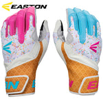 Sweeten your swing with the Easton Walk-Off Ethos Sugar Rush Batting Gloves! The one-piece palm is crafted with tackified full grain leather, creating a thicker and more durable hitting experience. Additionally, there is a reinforced double-layer leather palm for even more durability. For added stability, these batting gloves are designed with an ergonomic one-piece neoprene cuff, thumb, and wraparound strap featuring the Easton logo.