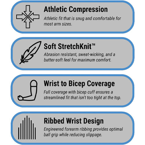 We ditched thick, itchy fabric for our sweat-wicking, cool to the touch, contoured StretchKnit™. This abrasion resistant pair of pro arm sleeves are ready for all areas of the court.