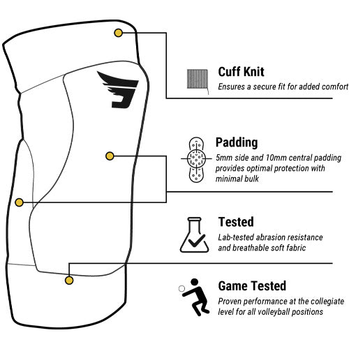 Jumplete's game-changing volleyball knee pad is finally here. Tailor-made for agility and protection with a snug cuff knit, dual-thickness padding, and breathable fabric.