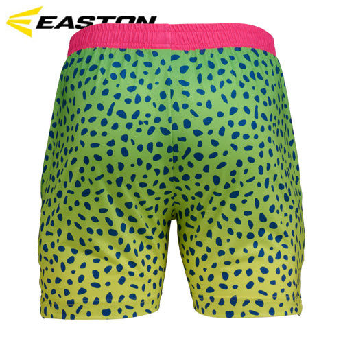 Bright, bold, and built for movement! The Easton Spring Break Green Confetti Short is perfect to take from batting practice straight to the beach. The lightweight material makes these shorts ultra breathable and comfortable. The party doesn't have to stop on the field, the ombre design and green confetti shows you are ready to celebrate. Wherever your landing for vacay, don't forget to bring your Easton Spring Break Green Confetti Short.