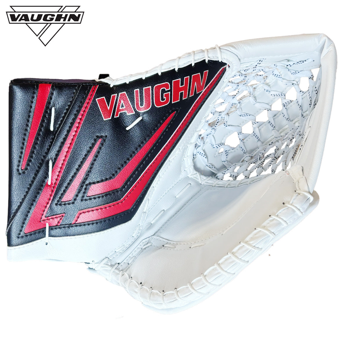 The VX1 Pro Carbon catcher is made out of a durable leather featuring a sharp new graphic. It features QuickSlide accents in high wear areas along with a nylon binding and backhand. Vaughn uses a Hex Mesh inner lining and finger stalls for better breathability, comfort and quick drying. The interior of the finger stalls contain an internal grip rail helping goalies get a better grip on the glove allowing them to snap it shut quicker and with ease. The VX1 Pro Carbon catcher features an HD foam pad over the back of the fingers as well as a raised HD foam finger tip deflecting rail. A stronger Pure Carbon molded palm and front thumb insert combined with the Shock Shield palm and thumb profile provide superior protection and durability while a reinforced perimeter edge works to extend the lifespan on the VX1 Pro Carbon catcher.