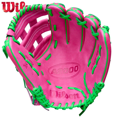 Hold down the hot corner like J-Ram with the Spring 2026 José Ramírez A2000® JR11 GM, Ramírez’s 12” infield glove designed to make loud plays on the infield. The 12” reach offers the length Ramírez prefers to pick hard-hit balls down the line, and the sturdy Dual Post Web channels balls into the deep pocket. Ramírez designed his A2000 with bold Flamingo Pink Pro Stock® leather, ideal for enduring performance and comfort. Flamingo Pink and Neon Green SuperSkin™ spans the back to reduce glove weight, repel moisture and stay ready to make any play.