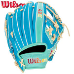 Turn quick double plays up the middle or corral hard hit balls down the third base line with the Winter 2025 A2K® 1786, Wilson’s iconic infield glove pattern that leverages a shallow pocket design, H-Web construction and 11.5” reach for total control and fast transfers. Expert glove craftsmen in Japan assemble the A2K® 1786 with Teal and Light Blue Pro Stock® Select leather for a warm appearance and elite performance. Double Palm Construction – an extra layer of leather between the palm shell and liner – forms to your hand during the break-in process and holds its shape over time.